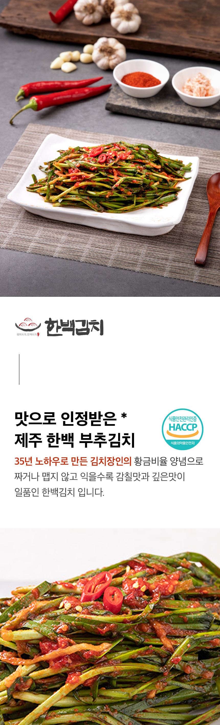 원료 및 함량 | 부추(국산)40%,정제수,무(국산)14.82%,고춧가루(국산)3.86%,염장새우,홍고추,마늘,설탕,멸치추출농축액,양파,알파미분,염장황강달이,L-글루탐산나트륨(향미증진제),다시마엑기스,멸치엑기스,멸치젓,생강,삭카린나트륨제제 |